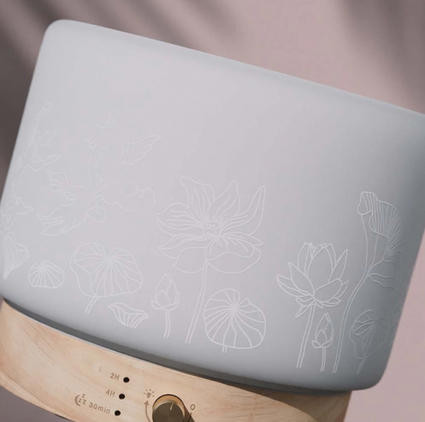 Ultrazvukový difuzér LISALIA byl speciálně navržen pro snadnější usínání. Aromaterapie a difúze esenciálních olejů jsou vzácnými spojenci pro navození relaxace. Jemná studená mlha zvlhčuje vzduch a příjemně tlumené světlo vás připraví na klidný spánek. Difuzér je vhodný do místností s rozlohou do 60 m². Nabízí 4 programy: 2 hod, 4 hod, 6 hod (2+4) a 30 minut se snižující se intenzitou světla až do jeho úplného zhasnutí a automatického vypnutí. Jednoduchá regulace intenzity světla. Ultrazvukový difuzér je elektrický přístroj, který rozptyluje esenciální olej do vzduchu. Ultrazvukovými vibracemi naruší molekuly vody a způsobí oddělení vodních částic. Rozdělené částice jsou záporně nabité a stanou se lehčími než vzduch. To je viditelná studená pára, která vychází ze zapnutého difuzéru. Se zápornými ionty je současně do vzduchu uvolňován i esenciální olej, který si podle svého uvážení do nádržky s vodou přidáte (3 – 5 kapek). Esenciální oleje díky antibakteriálním schopnostem pročišťují i provoní vzduch a zároveň stimulují mysl. Difuzér můžete využívat pouze s vodou, bez přidaných esenciálních olejů.
