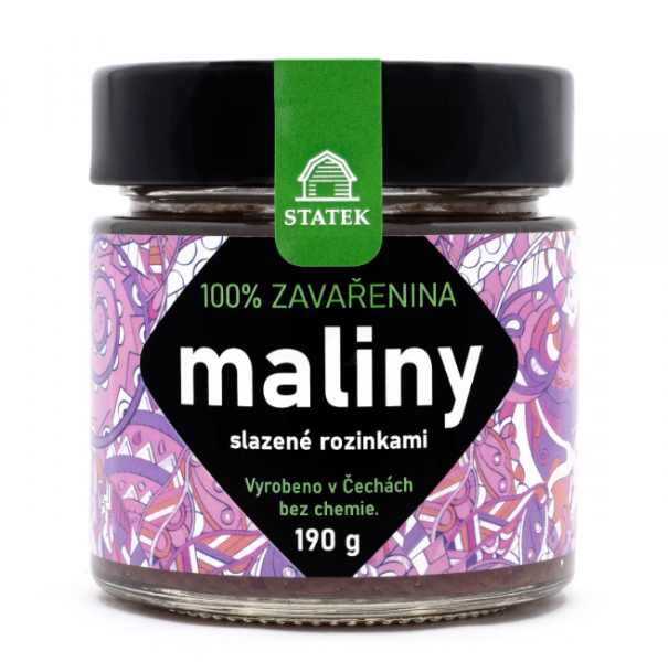 | Popis výrobku | malinová zavařenina slazená rozinkami 100% ovoce 190g